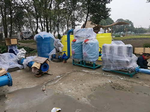 用户定制我司喷灌首部系统应用天府农博园安装调试现场!