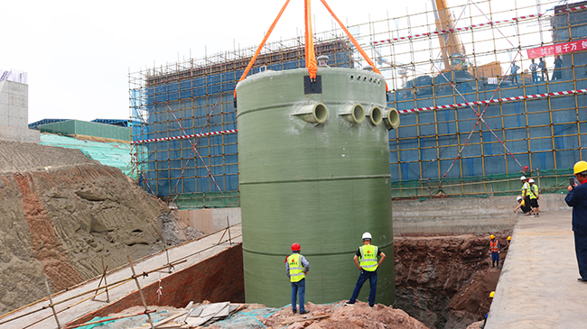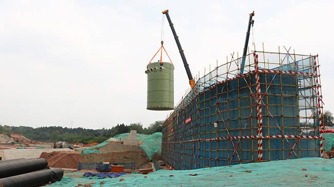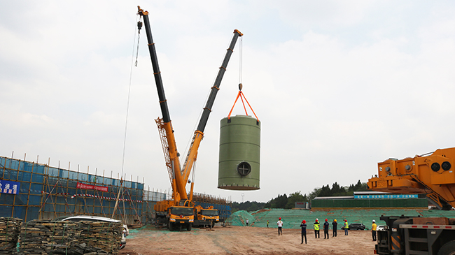 我司直径7.5米大型一体化预制泵站应用成都2024园艺博览会安装现场!