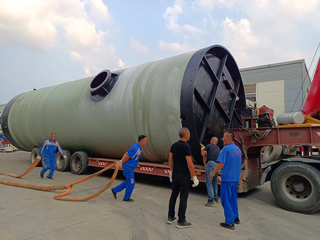 我司大型玻璃钢一体化泵站发货应用遂宁涪江建设工程项目雨污水提升!