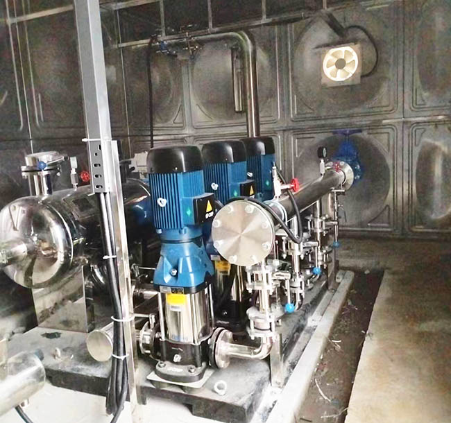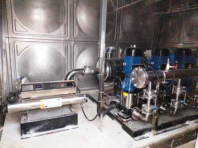 我司不锈钢一体式水箱机组供水设备安装应用重庆国防教育基地!