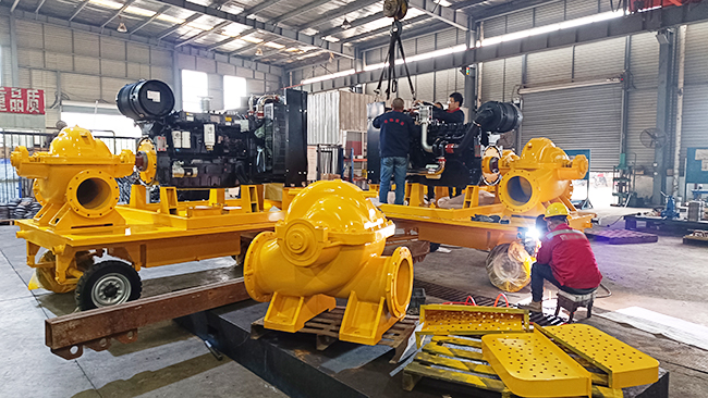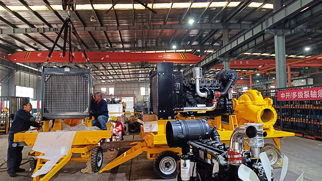 我司柴油机移动泵车年底出货加工生产现场!