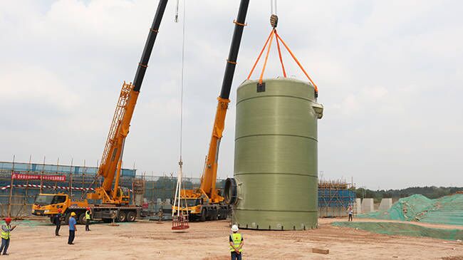 我司3.8米*19.8米大型玻璃钢一体化预制泵站安装
