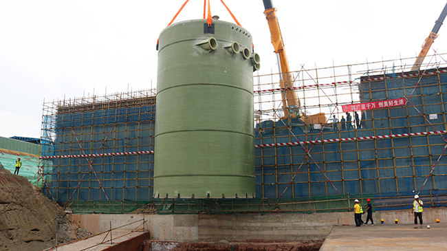 我司直径7.5米大型一体化预制泵站应用成都2024园艺博览会安装现场!