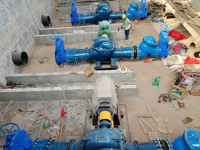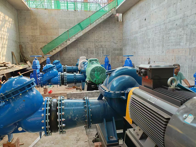 我司大流量供水双吸离心泵安装资阳轨道交通建设!